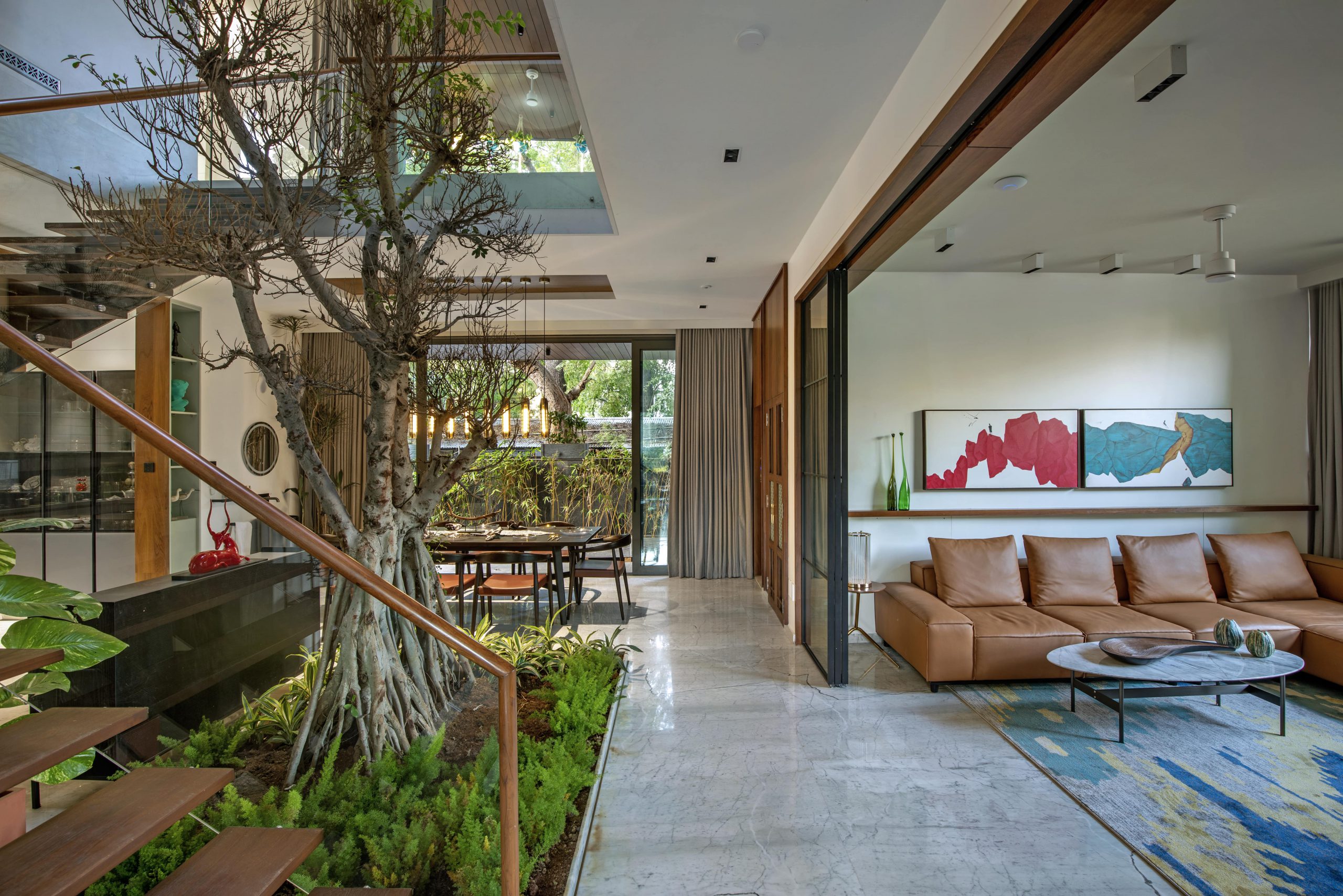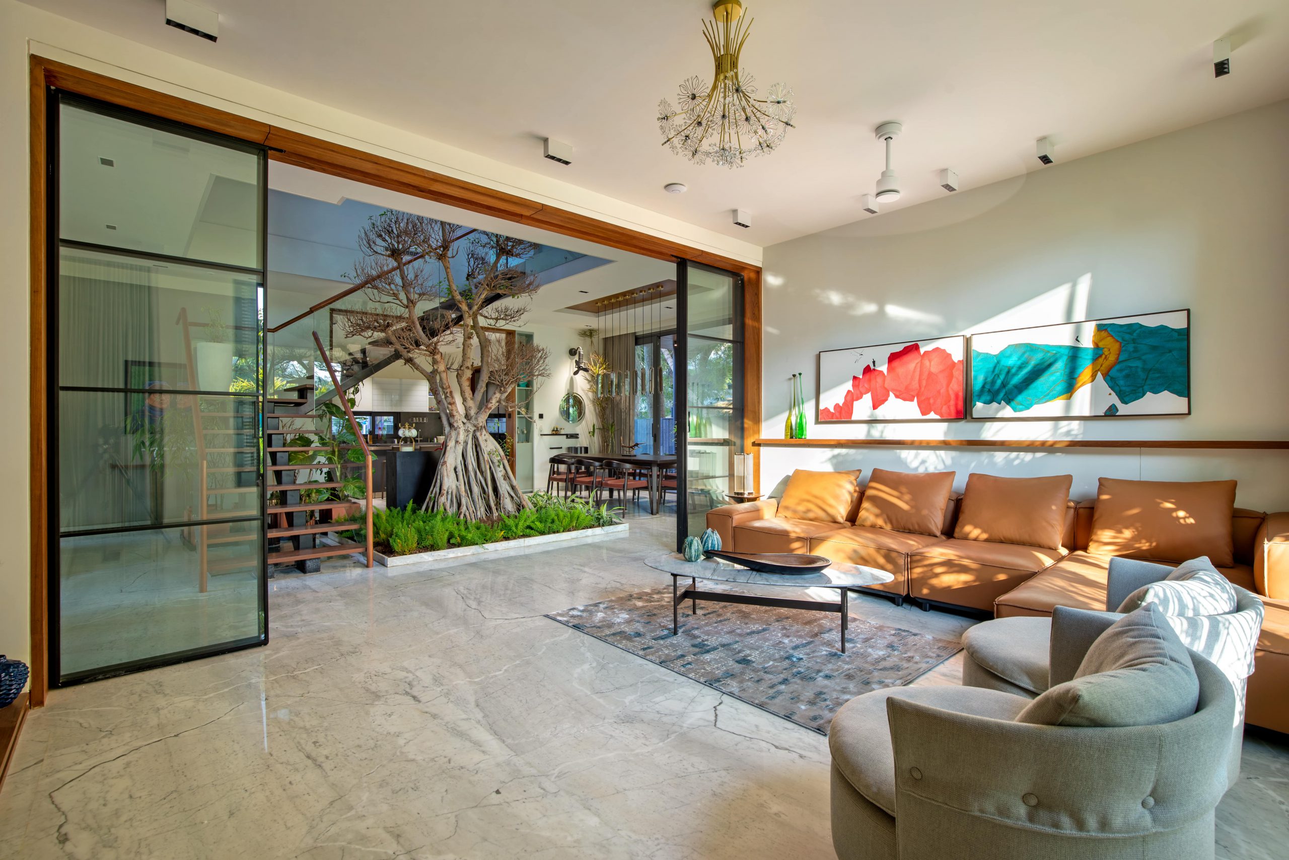The home designed for Dr. Bhavesh Thakkar is a reflection of sophistication and comfort, blending contemporary aesthetics with functional design. Special attention was given to creating a serene environment with spacious interiors and private spaces that promote relaxation and well-being, ensuring a harmonious living experience.